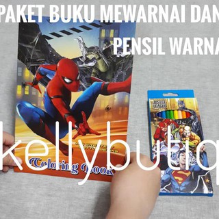 Import Paket Buku Mewarnai Spiderman, Sticker Set Pensil Warna Superhero Hobi Child | Shopee Indonesia