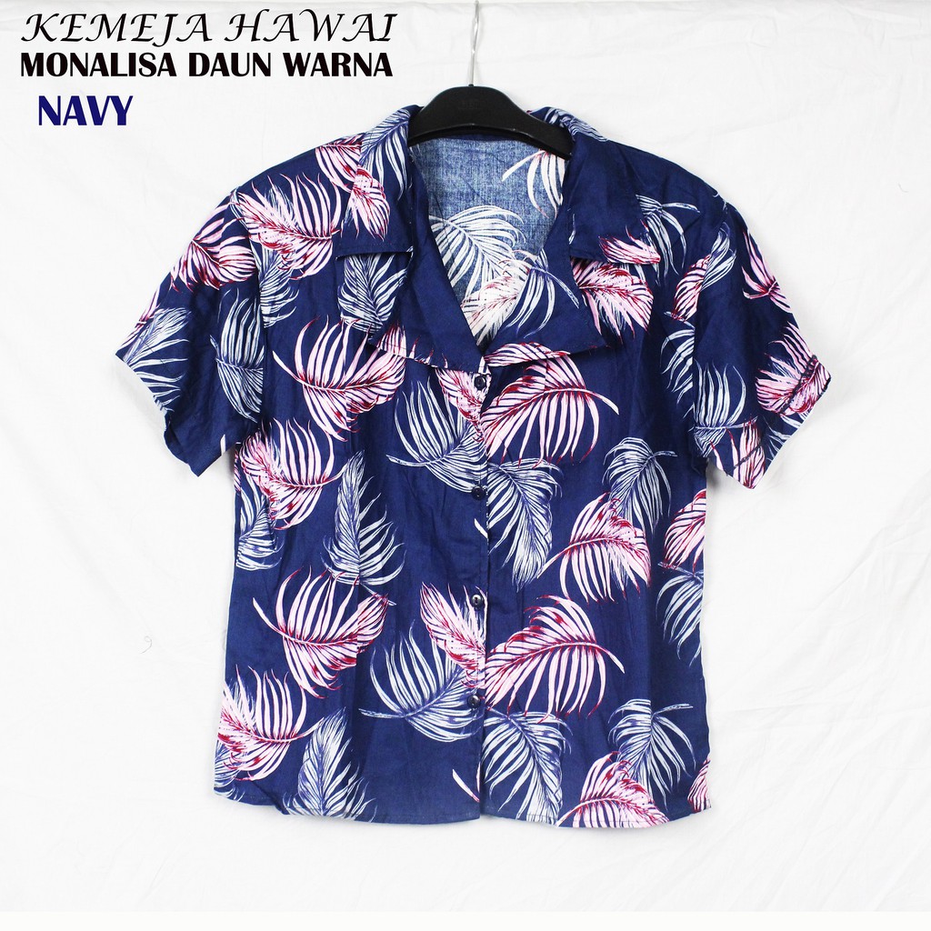 FORTGLASS MONALISA DAUN WARNA Baju Pantai Wanita Kemeja Hawai Bali Cewek Lengan Pendek Motif | Shopee Indonesia