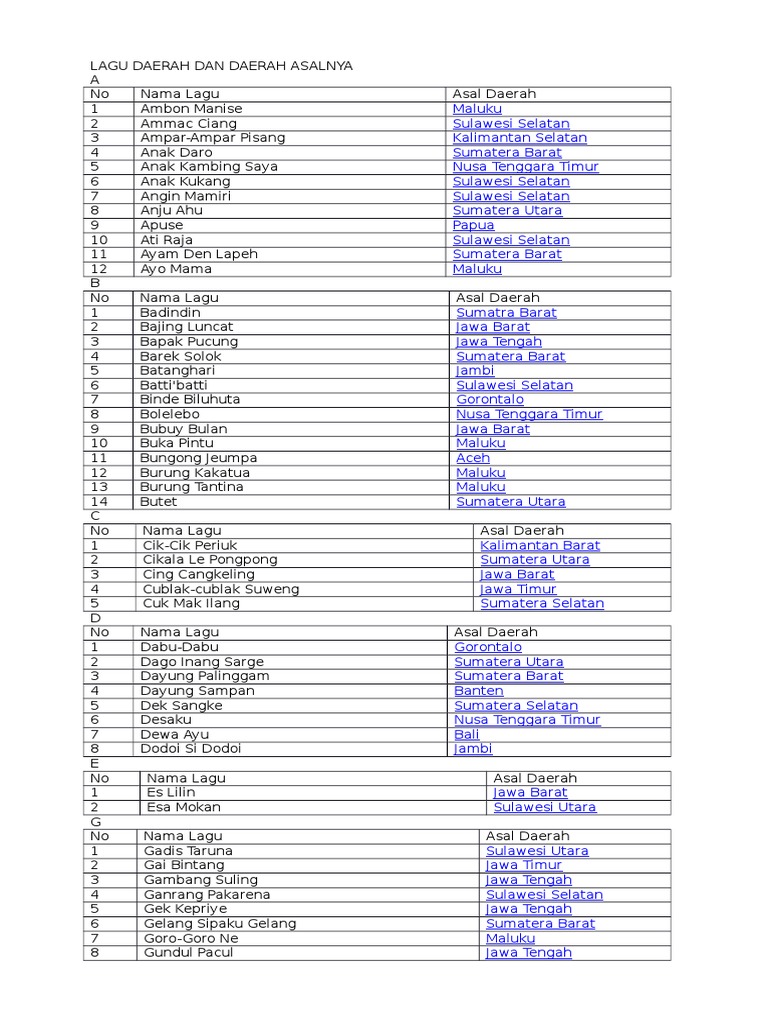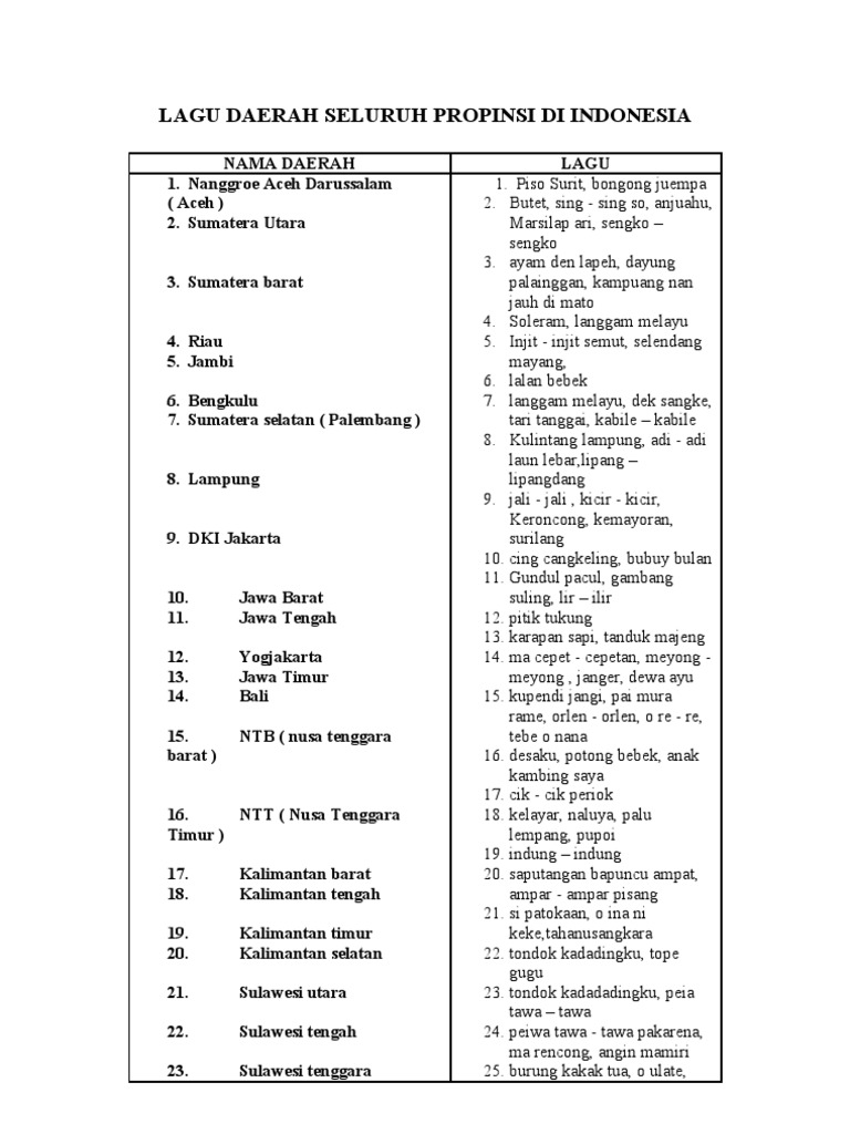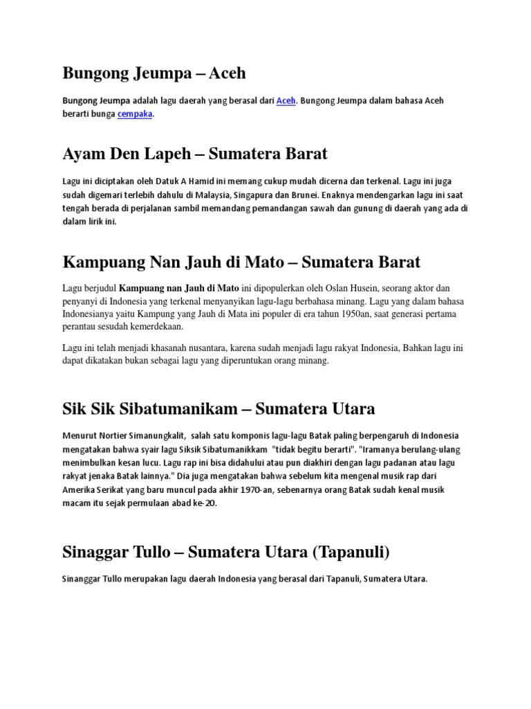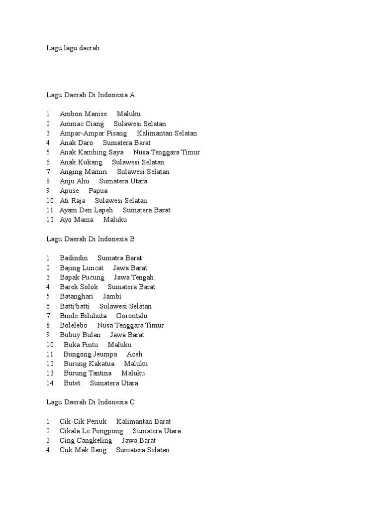 DOC) Macam Macam Lagu Daerah Di Indonesia | Ulett Mlingkel - Academia.edu