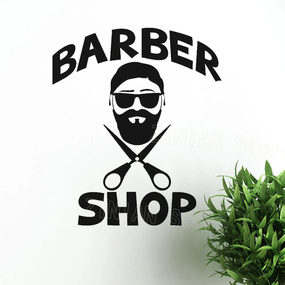 Pria Pangkas Rambut Penata Rambut Salon Dinding Logo Stiker untuk Man Art Decals Poster Dinding Tahan Air Dekorasi Jendela Z416|Wall Stickers| - AliExpress