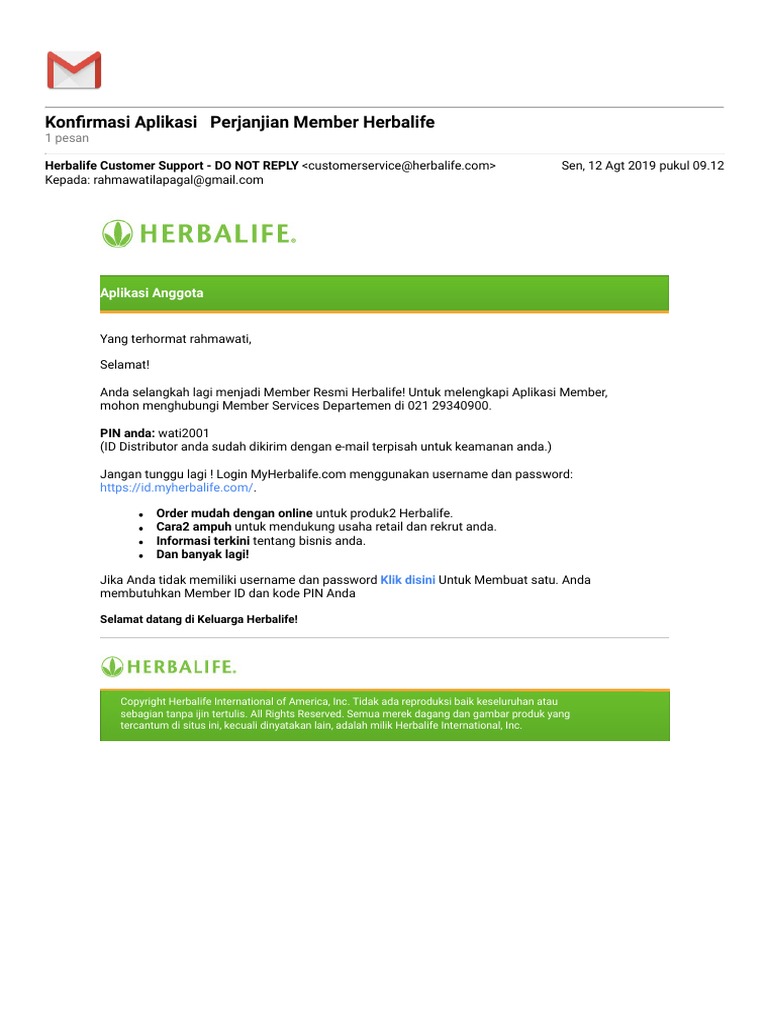 Gmail - Konfirmasi Aplikasi Perjanjian Member Herbalife