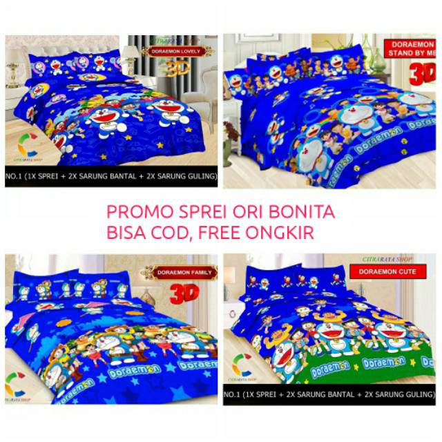 Sprei Bonita Doraemon / seprei Bonita 180 x200 / sprei Bonita UK no 1 / seprei Bonita murah | Shopee Indonesia