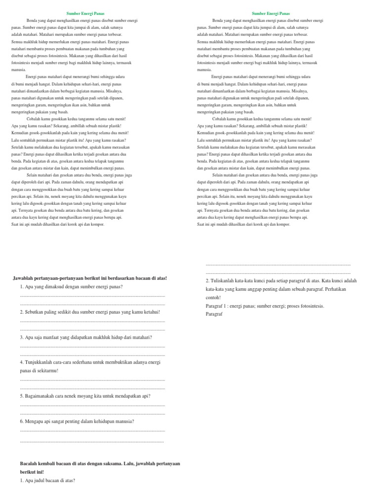 Menjawab Pertanyaan Dari Bacaan Sumber Energi Panas ( Buku Siswa Kelas V Tema 6 ) Semester 2 - Gurune.net