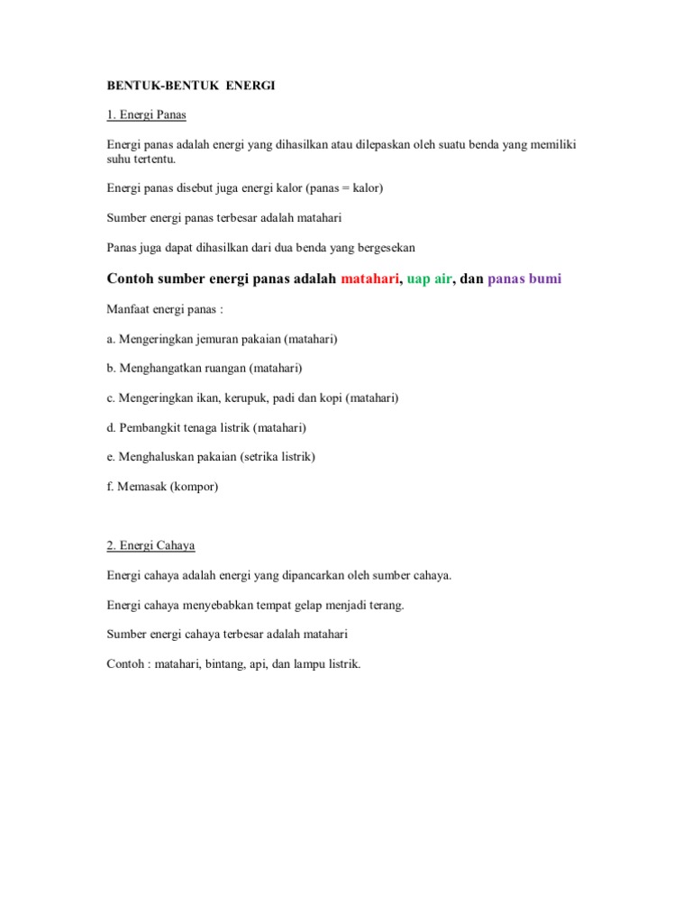 Pengertian, Bentuk dan Perubahan Energi - Pelajaran.click