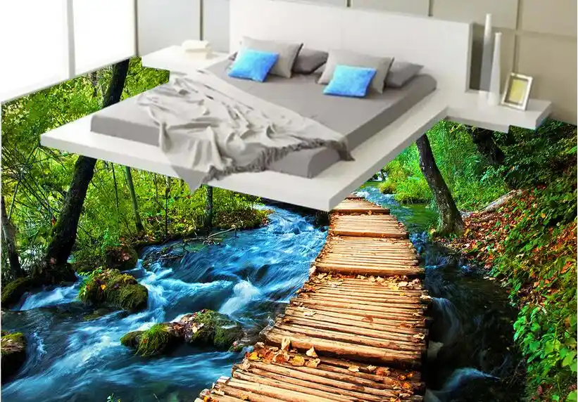 3 d lantai pvc kustom dinding gambar stiker 3 d hutan sungai jembatan ruang duduk lukisan foto 3d dinding mural wallpaper|dinding mural wallpaper|lukisan dinding wallpaper3d mural dinding wallpaper - AliExpress