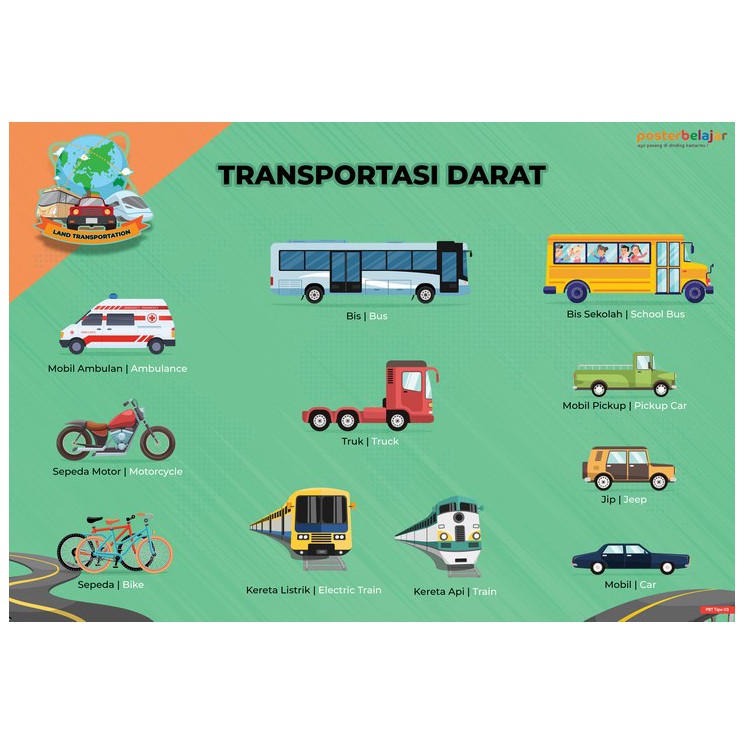 Tipe 03 Poster Belajar Mengenal Transportasi Darat Mainan Edukasi Anak Usia Dini | Shopee Indonesia