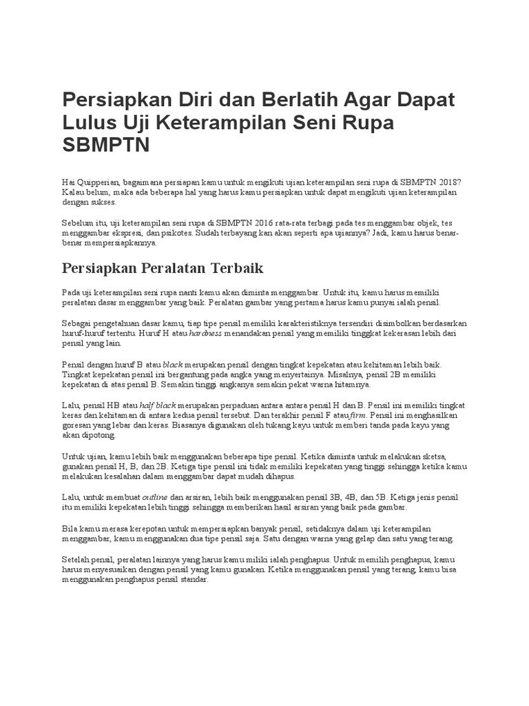 Persiapan Ujian Tes Seni Rupa Sbmptn