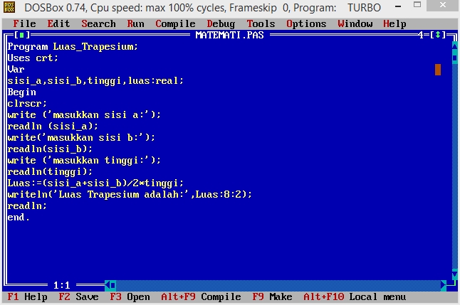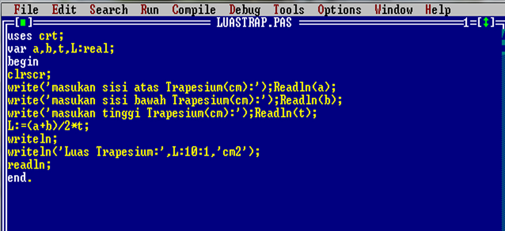 Abdul Adkins Blog: Menghitung Luas Trapesium Pada Turbo Pascal