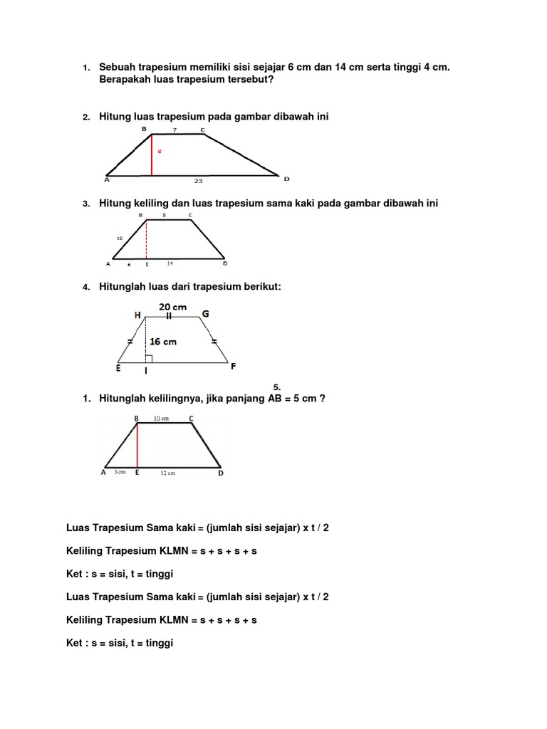 Contoh Soal Dan Pembahasan Keliling Dan Luas Trapesium