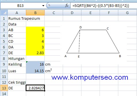 Rumus luas dan keliling trapesium di excel 2007 | Komputer SEO
