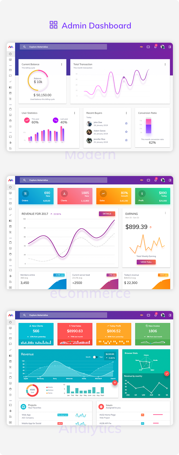 eCommerce Dashboard - Materialize Admin Template by Anand Patel on Dribbble