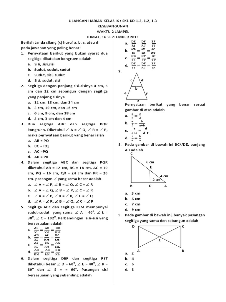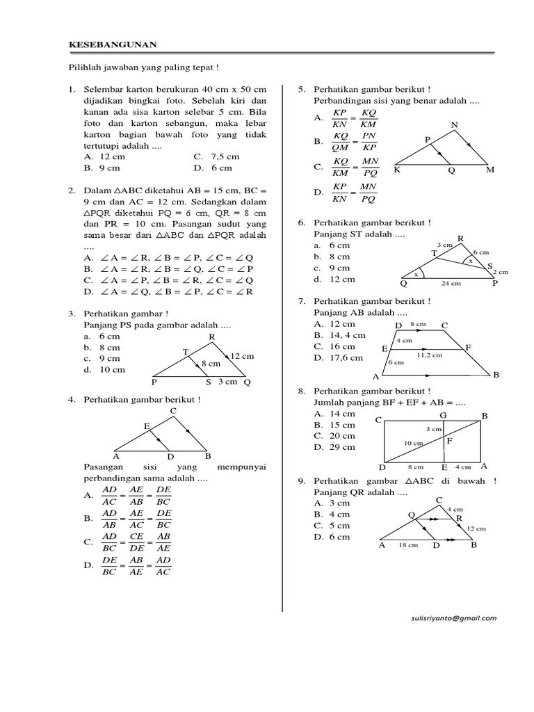 Soal-soal Kesebangunan dan kongruen pada segitiga
