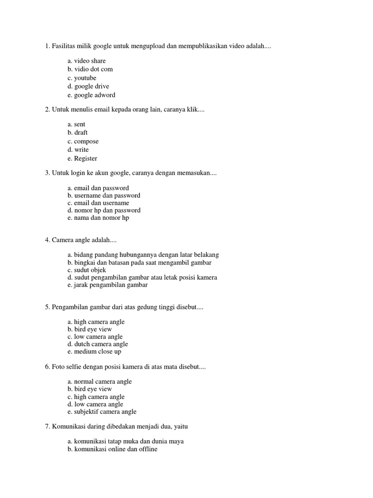 SOAL SIMKOMDIG.docx - 1 fasilitas milik google untuk mengupload dan mempublikasikan video adalah a video share b vidio dot com c youtube d google drive | Course Hero