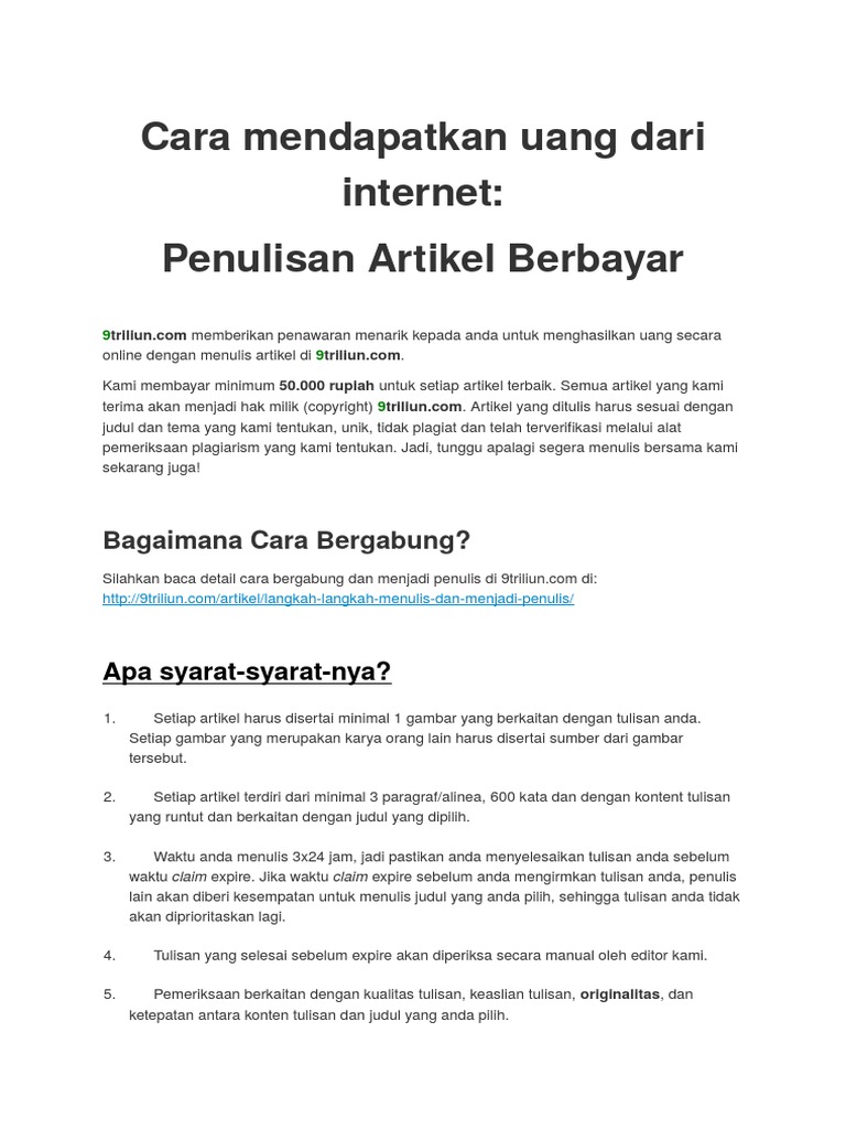 Cara Mendapatkan Uang Dari Internet