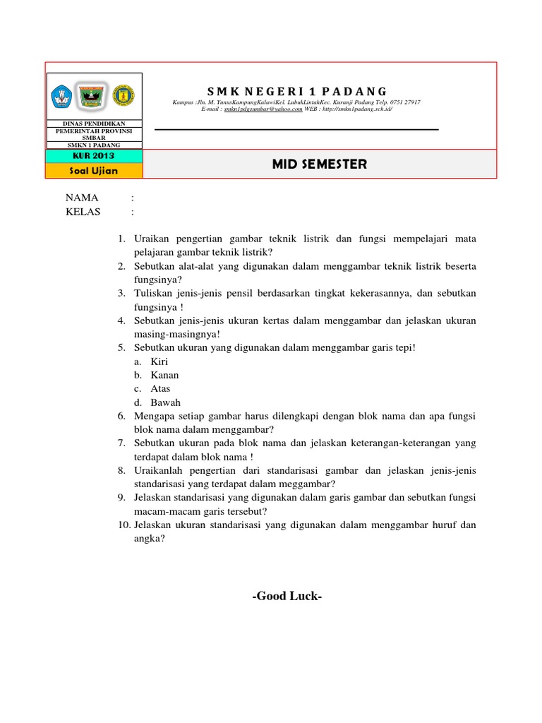HANDOUT PERTEMUAN 1 MATA PELAJARAN GAMBAR TEKNIK LISTRIK Nama : Nomor : Kelas : SMK N 1 PLERET YOGYAKARTA 2018