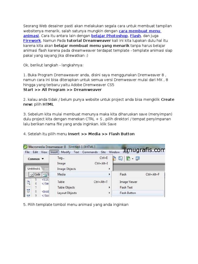 cara membuat menu animasi belajar Photoshop Flash Firework: Start » All Program » Dreamweaver