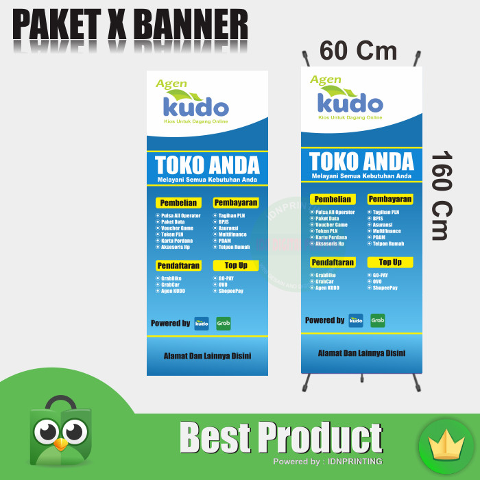 Jual X Banner Agen KUDO 60X160 Gratis Desain Dan Stand - Tiang - Kota Bekasi - IDN TEMPLATE | Tokopedia