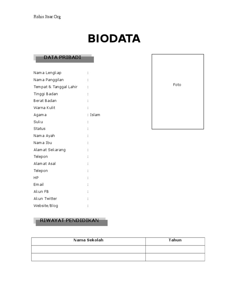 Template Biodata Diri