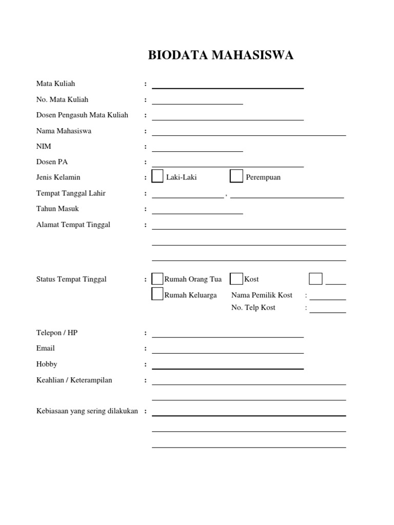 Contoh Biodata Diri Mahasiswa Lengkap | Kumpulan Soal pelajaran 8