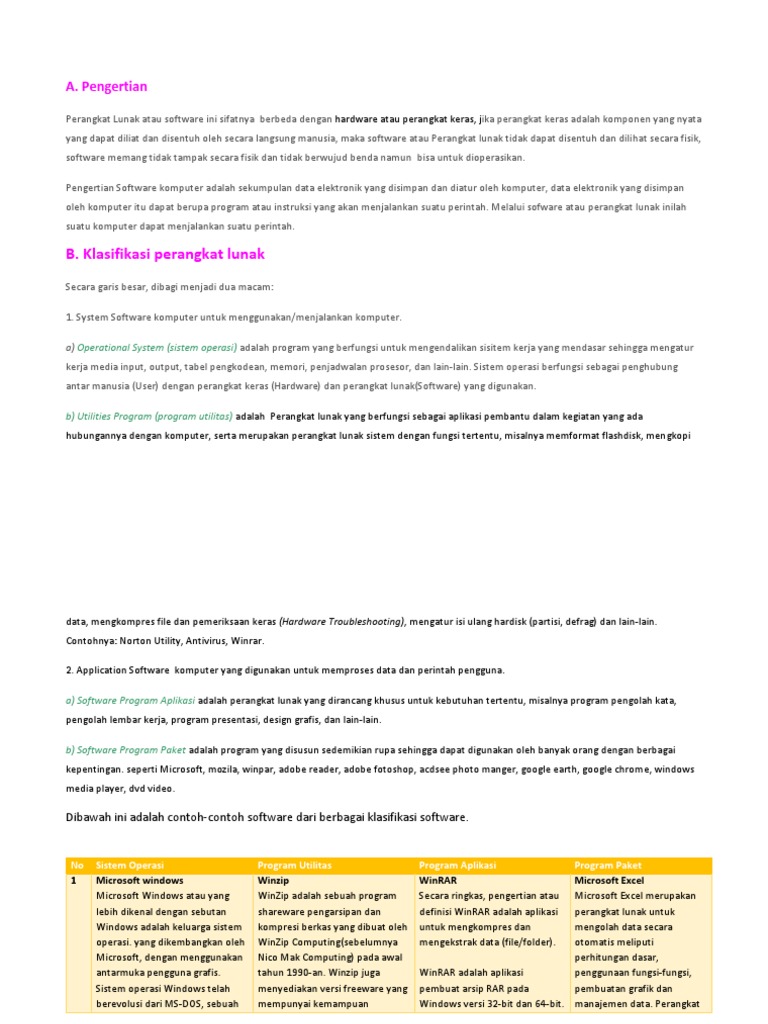 B. Klasifikasi perangkat lunak: A. Pengertian