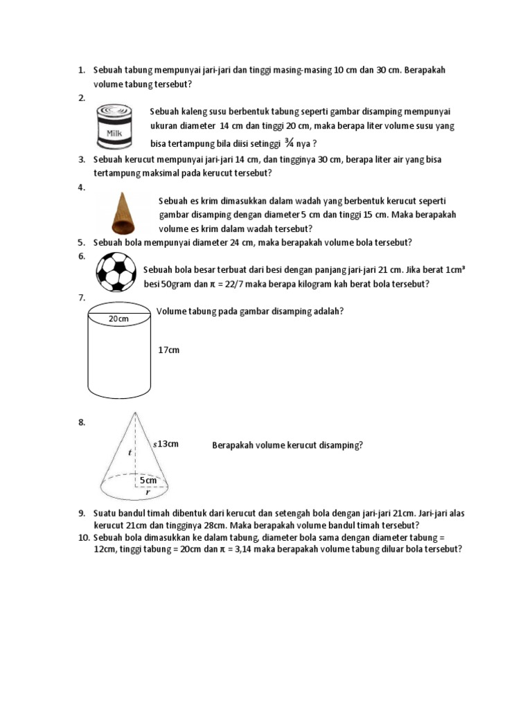 Soal Bangun Ruang Tabung atau Silinder plus Kunci Jawaban ~ Juragan Les