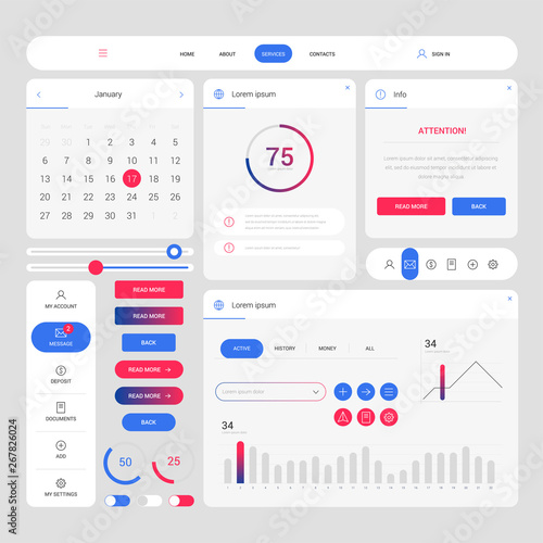 Flat UI Kit For Web And Mobile, UI Design, Page Website Design.. Royalty Free Cliparts, Vectors, And Stock Illustration. Image 31463182.