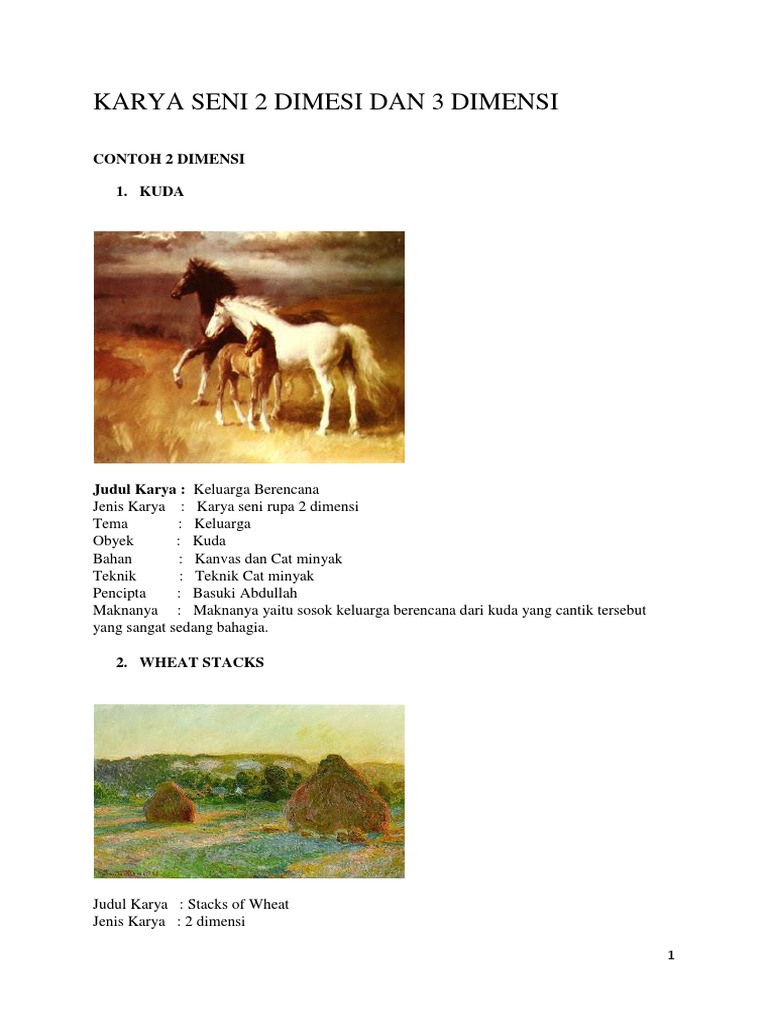 contoh karya seni rupa 2 dimensi dan 3 dimensi beserta penjelasannya
