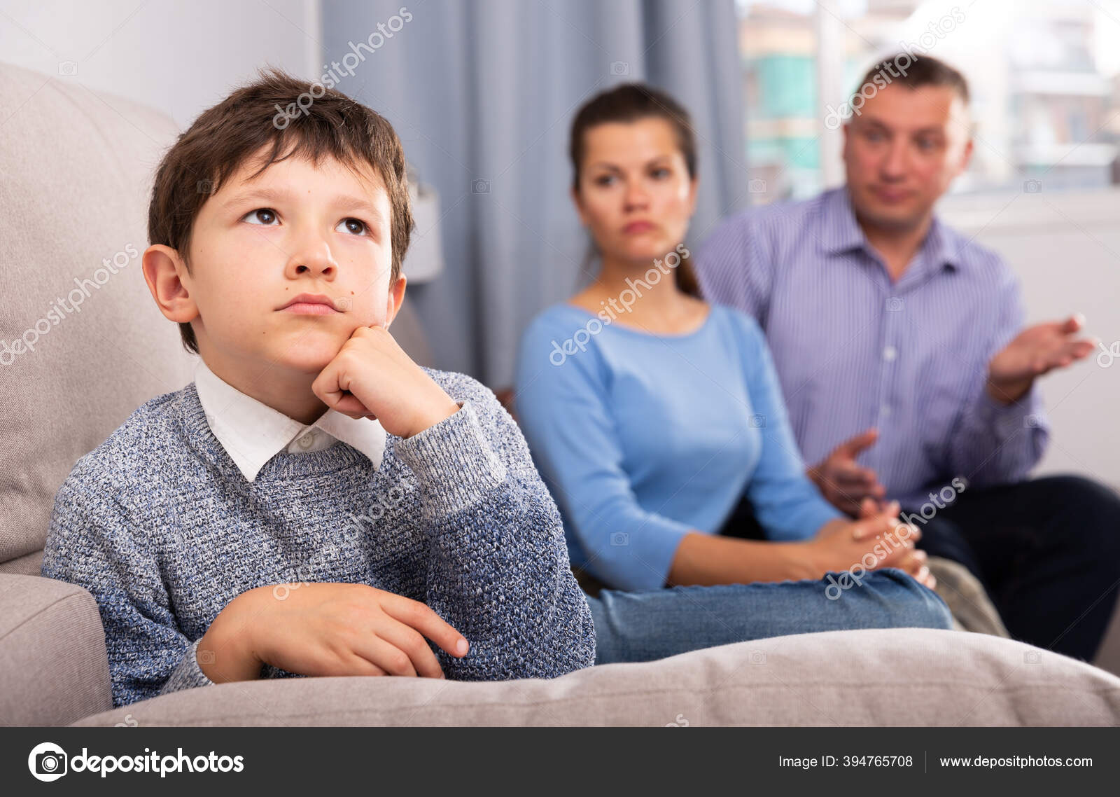 Anak yang marah dimarahi oleh ibu dan ayah — Stok Foto © Jim_Filim #394765708