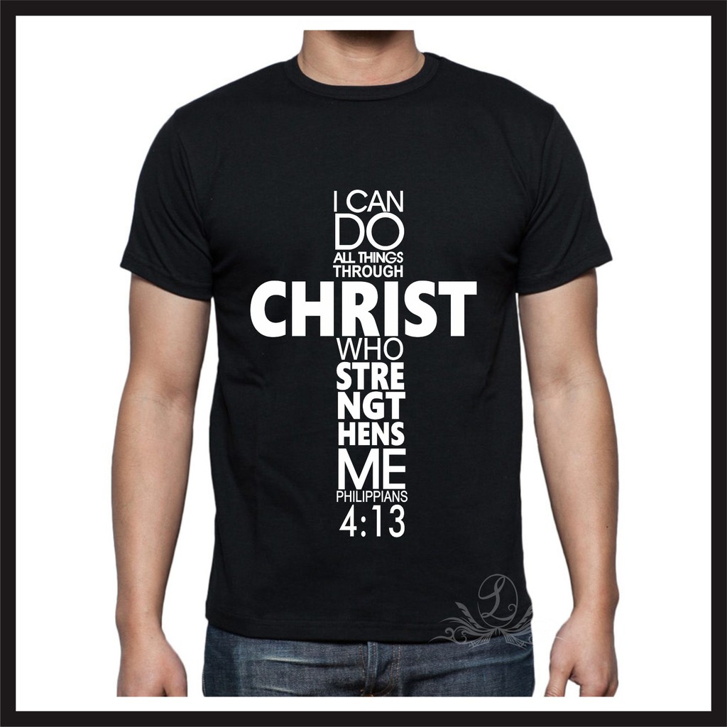 Baju Kaos Rohani Filipi 4:13 Ayat Alkitab Kristen Salib Custom Hitam Pria Cowok | Shopee Indonesia