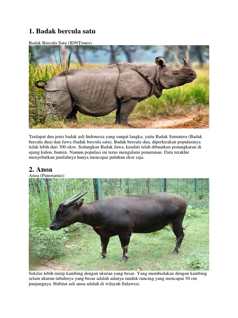 cara melestarikan badak bercula satu | Daftar FAUNA INDONESIA