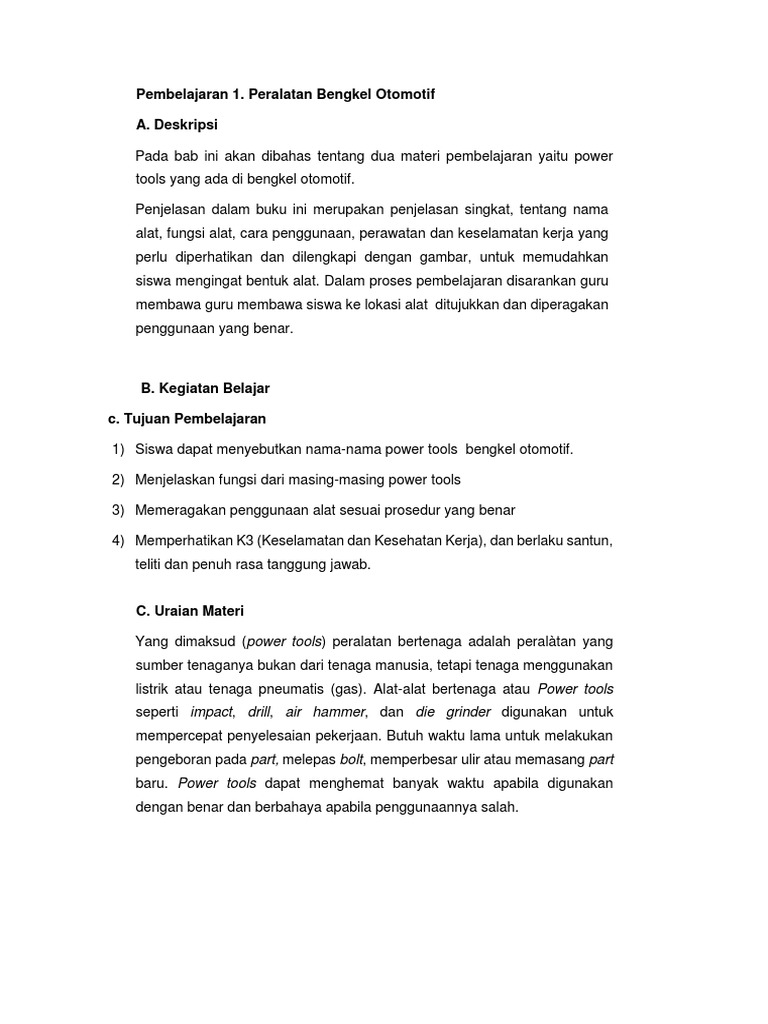 Modul PDTO Peralatan Bengkel Otomotif - BangLuq.com Blog Kesehatan, Pendidikan, Keuangan, Teknologi, dan Gaya Hidup