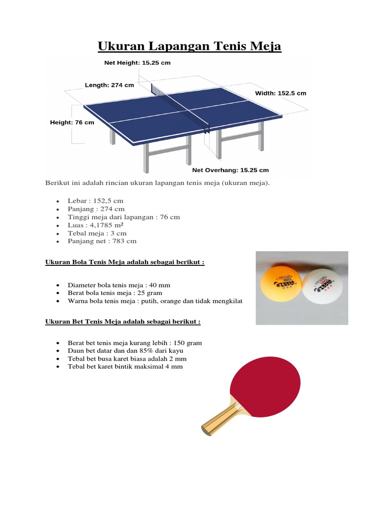 Ukuran Lapangan Tenis Meja Standar Nasional Internasional - Contoh Surat