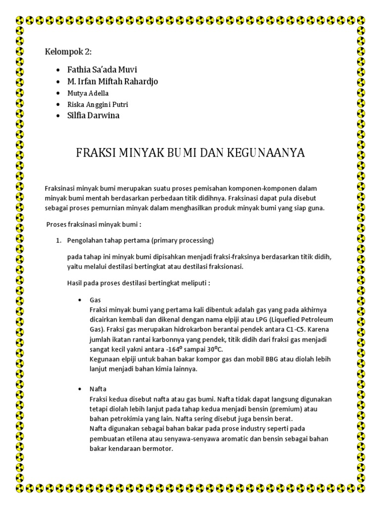 Minyak Bumi.docx - Minyak Bumi Kelompok Anggota 1 2 3 4 TUJUAN KEGIATAN 1 Menjelaskan teknik pemisahan fraksi-fraksi minyak bumi 2 Menyebutkan | Course Hero