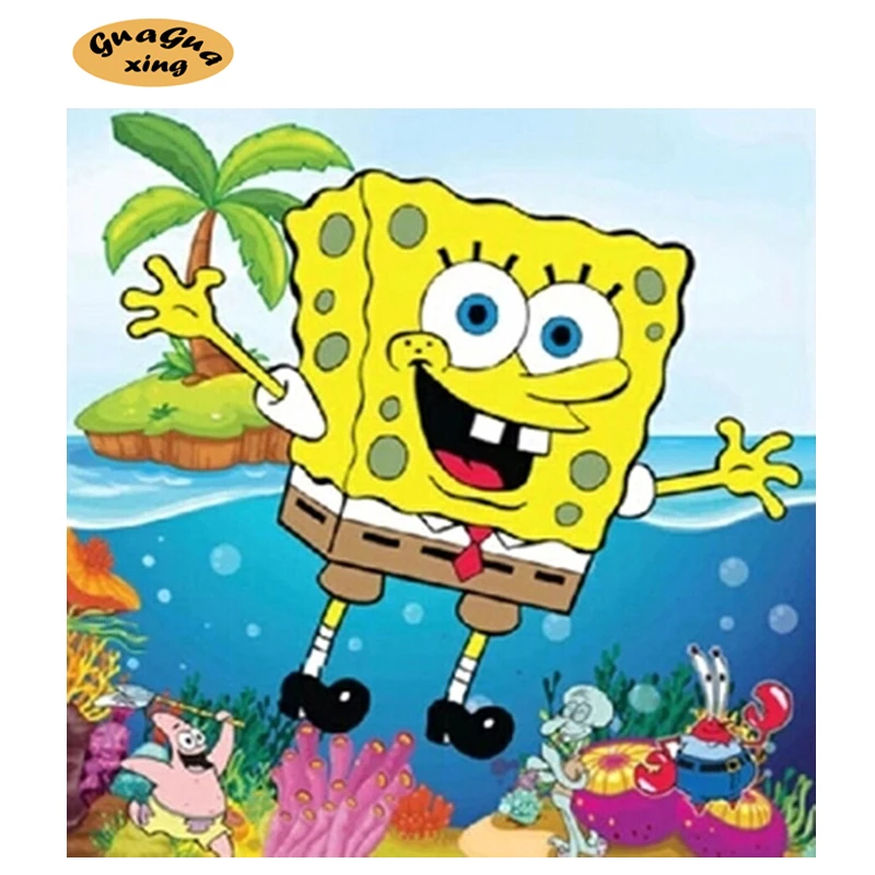 Menjahit 5D DIY Diamond Lukisan Kartun SpongeBob Gambar Cross Stitch Penuh Bulat Berlian Imitasi Bor Diamond Kamar Anak Dekorasi|Berlian Lukisan Cross Stitch| - AliExpress