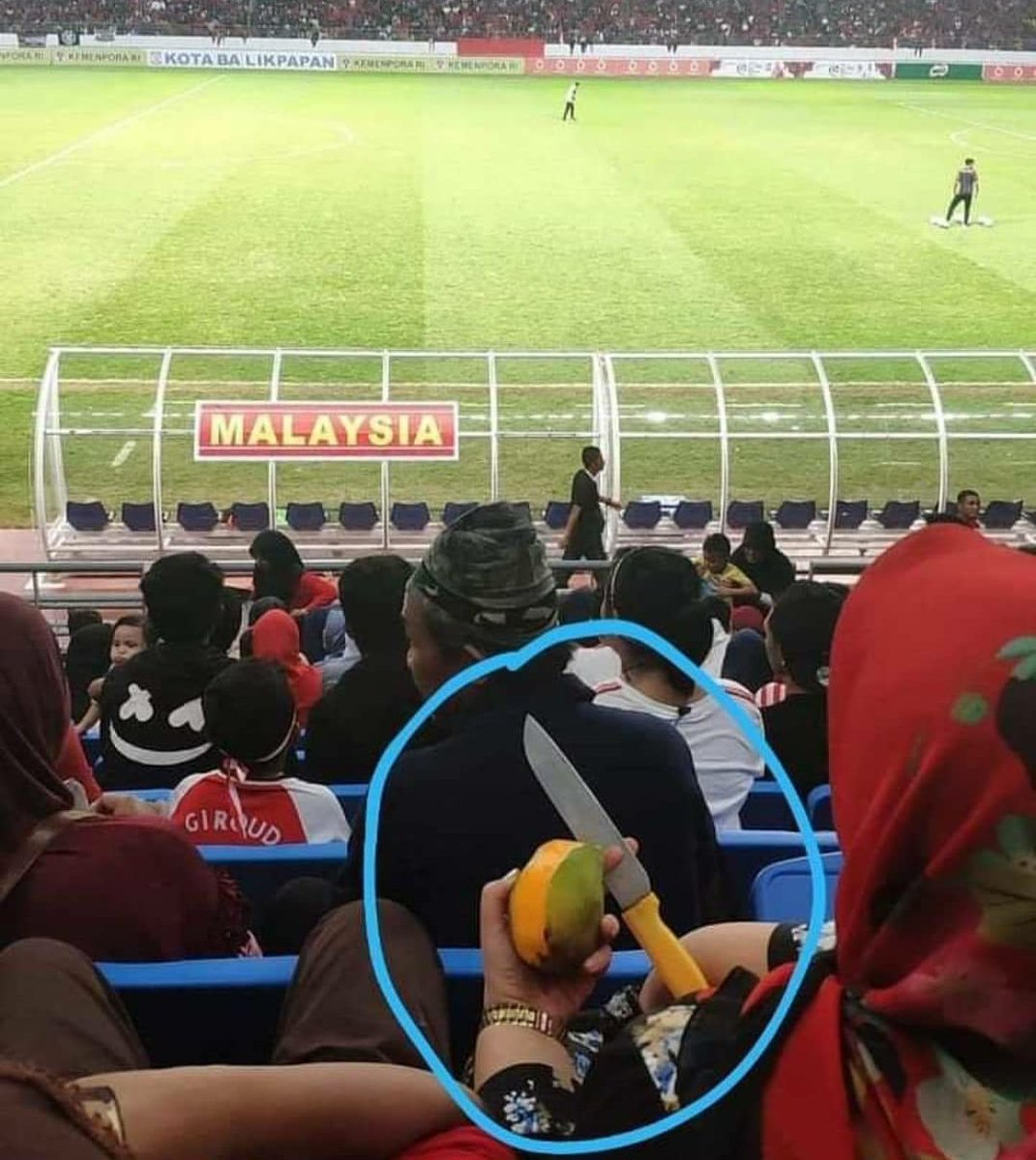Abe on Twitter: “Ini gokil sih. Nemu foto di grup WA. Nonton bola sambil makan mangga langsung dikupas di tribun lagi. Hahaha Monmaap Bu, secara regulasi perstadionan dimanapun itu salah. …