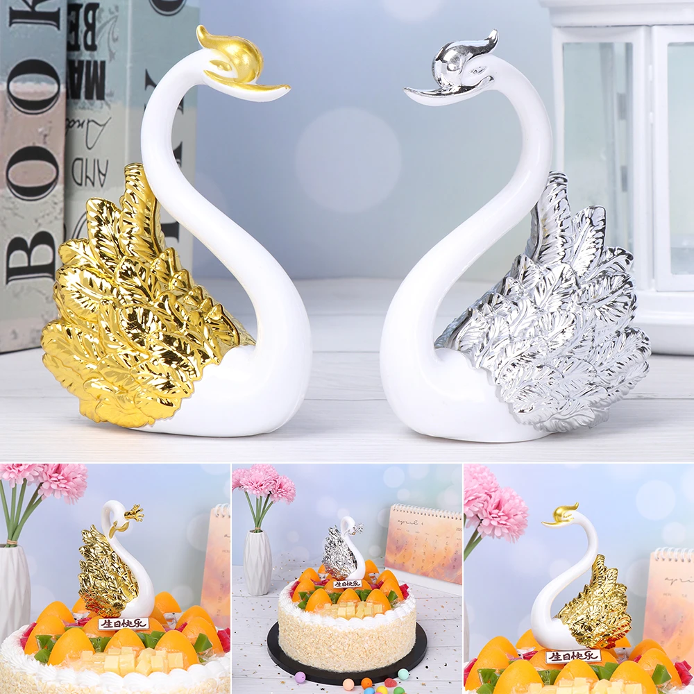 Emas Perak Bulu Angsa Mahkota Hiasan Kue Ulang Tahun Dekorasi Swan Cake Topper Pesta Hari Valentine Pernikahan Kue Alat|Perlengkapan Dekorasi Cake| - AliExpress