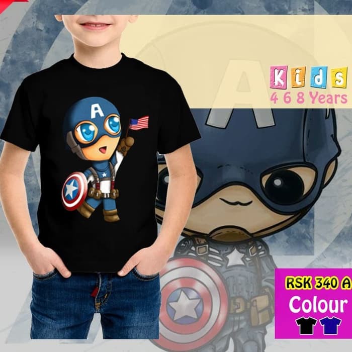 Dijual Baju Kaos Anak Cowok Captain America Chibi Superhero Avengers - 5-6 tahun, Hitam Limited | Shopee Indonesia