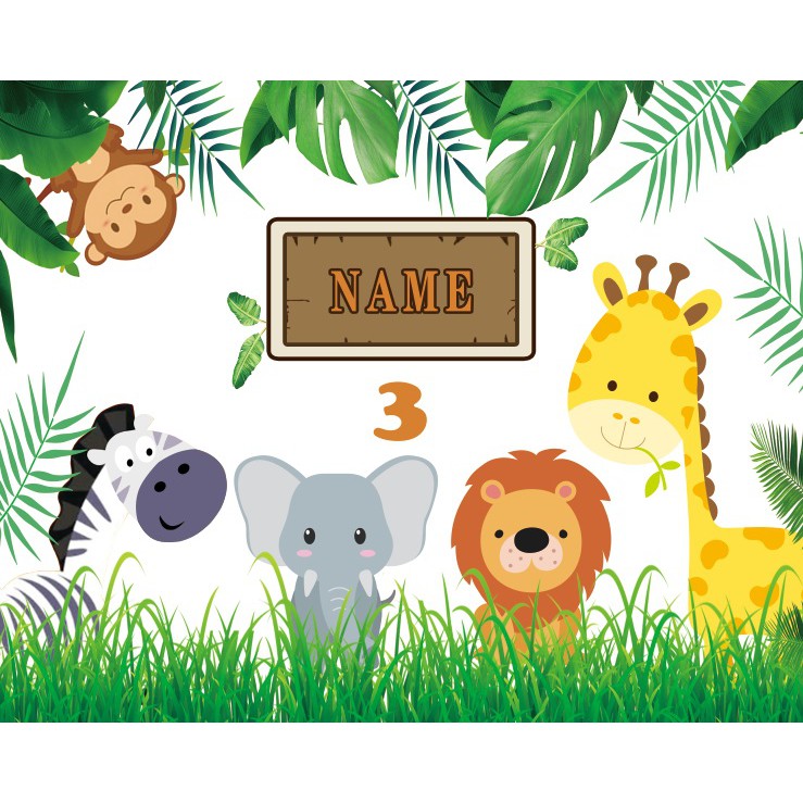 Safari pesta hewan Boy pesta ulang tahun spanduk Poster disesuaikan Hewan hutan poster Singa gaja | Shopee Indonesia