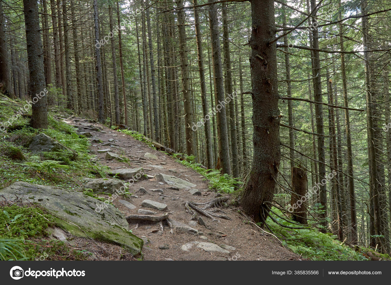 Lama Konifer Hutan Dengan Lumut Hijau Ditutupi Dengan Tanah Batu — Stok Foto © denfotoblog@gmail.com #385835566