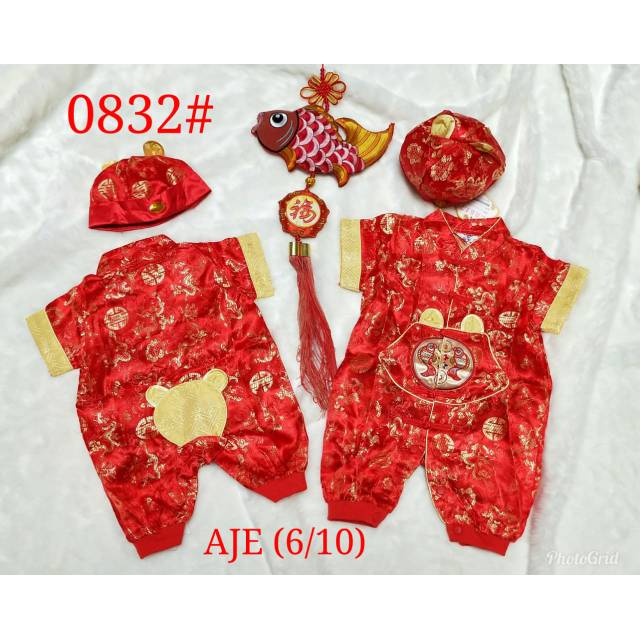 Jumper Baby Cheongsam Anak Kostum Imlek Lucu Terusan Merah Bayi Satu Set + Topi | Shopee Indonesia