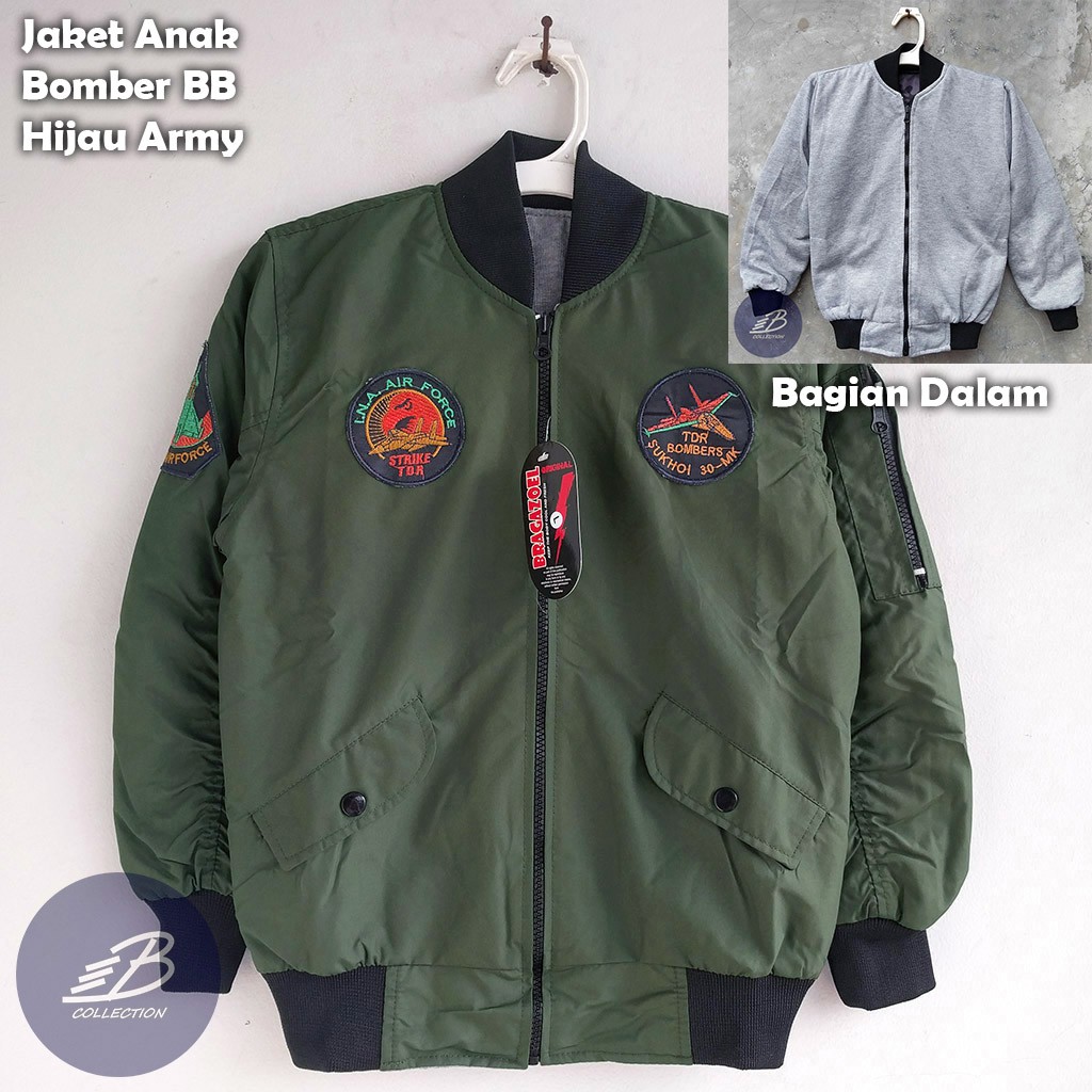Jaket Bomber Anak Bolak-Balik Bahan Parasut Taslan Fleece Warna Hijau Army | Shopee Indonesia