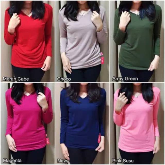 Jual Basic Vneck Lengan Panjang / Kaos Polos / Blouse / Atasan Pakaian Wanita - ANANDITA SHOP