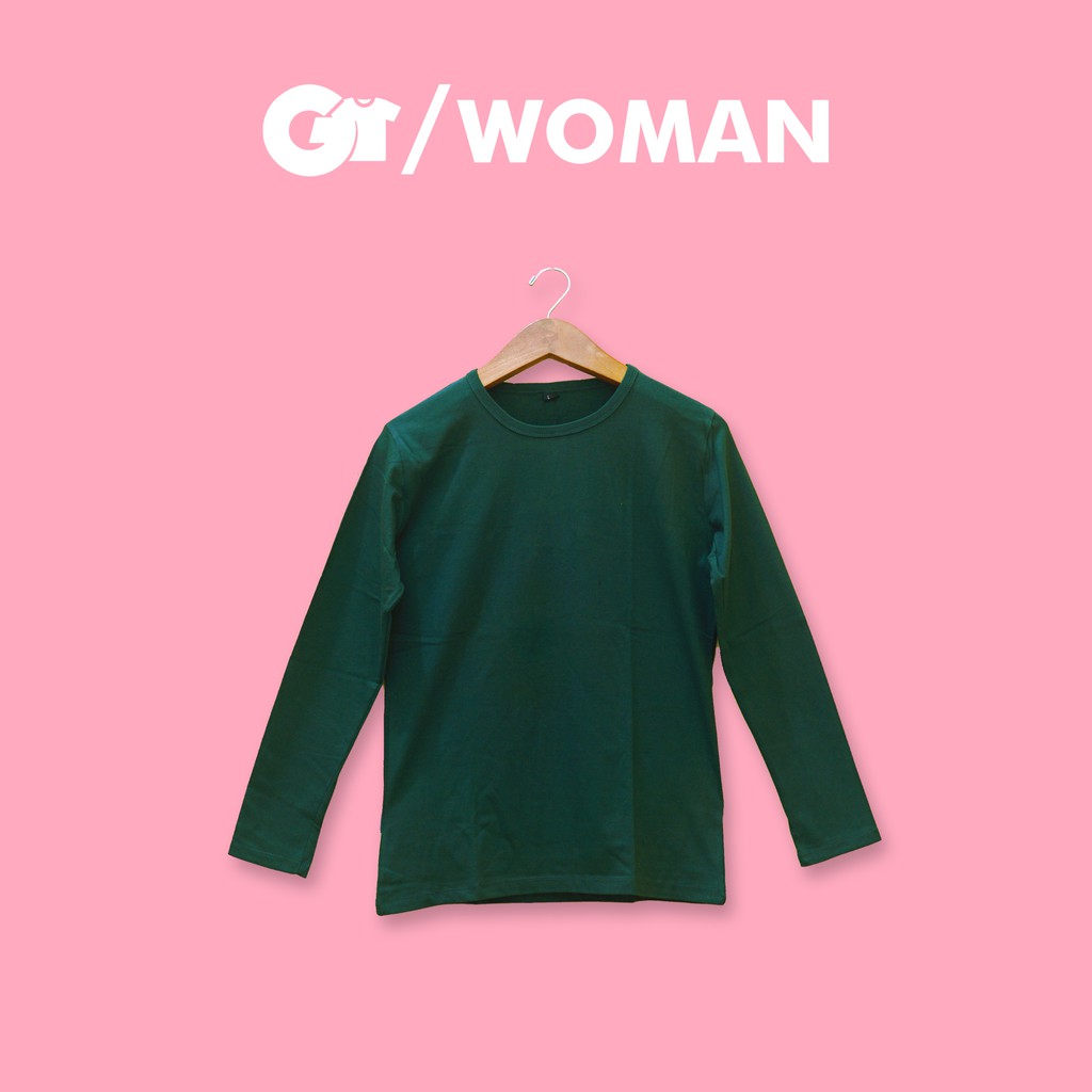 Kaos Polos Lengan Panjang Wanita Warna Hijau Botol - LSW08 | Shopee Indonesia