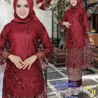 Setelan kebaya tunik bordir tulle mewah / kebaya modern / kebaya syar’i / maroon / navy / dusty | Shopee Indonesia