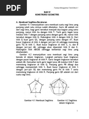 BAB IV KONSTRUKSI GEOMETRIS A. Membuat Segilima Menggambar Teknik Mesin 1 3 B. Membuat Segi Enam Gambar 4.5 menunjukkan cara membuat sebuah segi enam di - [PDF Document]