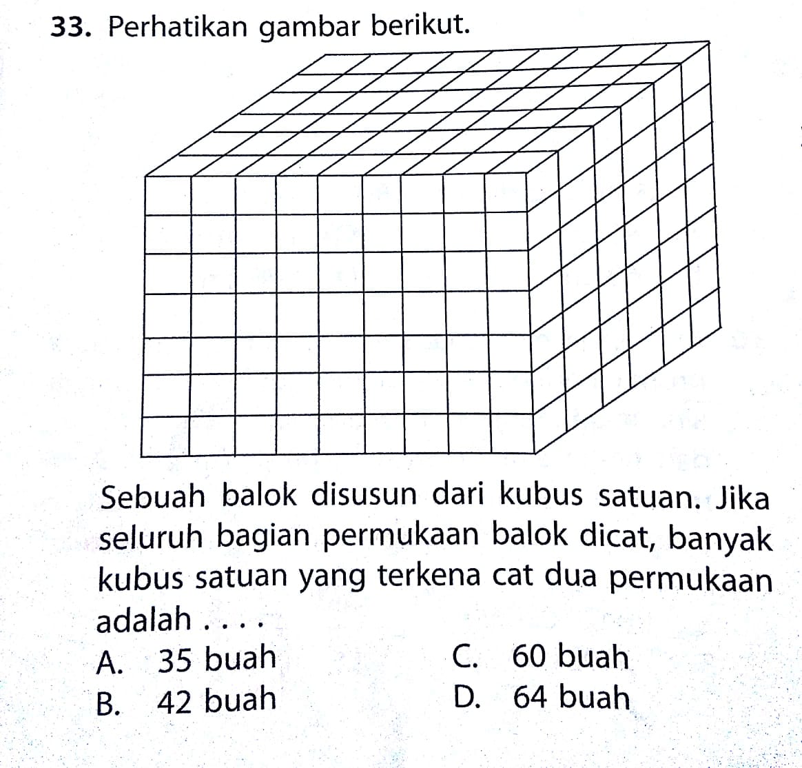 sebuah balok disusun dari kubus satuan.jika bagian luar seluruh permukaan balok dicat maka banyak - Brainly.co.id