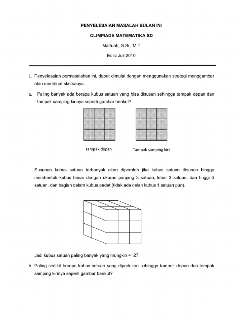 a Paling banyak berapa kubus satuan yang bisa disusun sehingga tampak depan dan | Course Hero