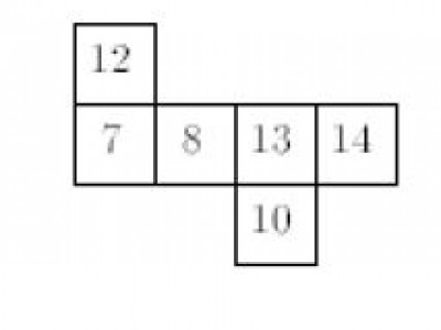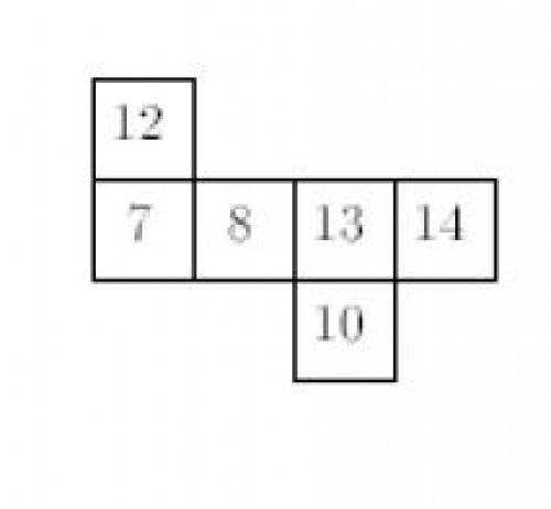 Perhatikan gambar rangkaian persegi di atas. Jika rangkaian tersebut disusun sedemikian sehingga membentuk suatu kubus dengan tutup nomor 8, maka alas kubus adalah nomor ….