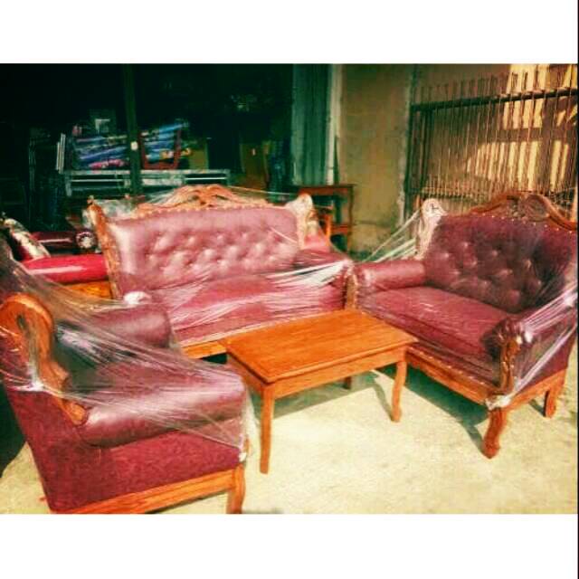 Kursi Jati Romawi Garuda warna Maroon Sofa Tamu Ruang Keluarga Kayu Asli Jepara Garansi Baru | Shopee Indonesia