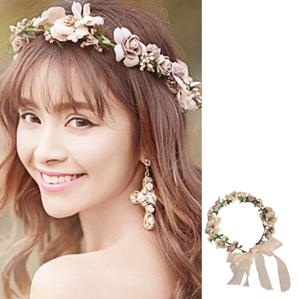 Ikat Kepala Bunga Wanita dengan Pita Karangan Bunga Pesta Pernikahan Wanita Gadis Karangan Bunga Mahkota Bunga Ikat Rambut | Lazada Indonesia